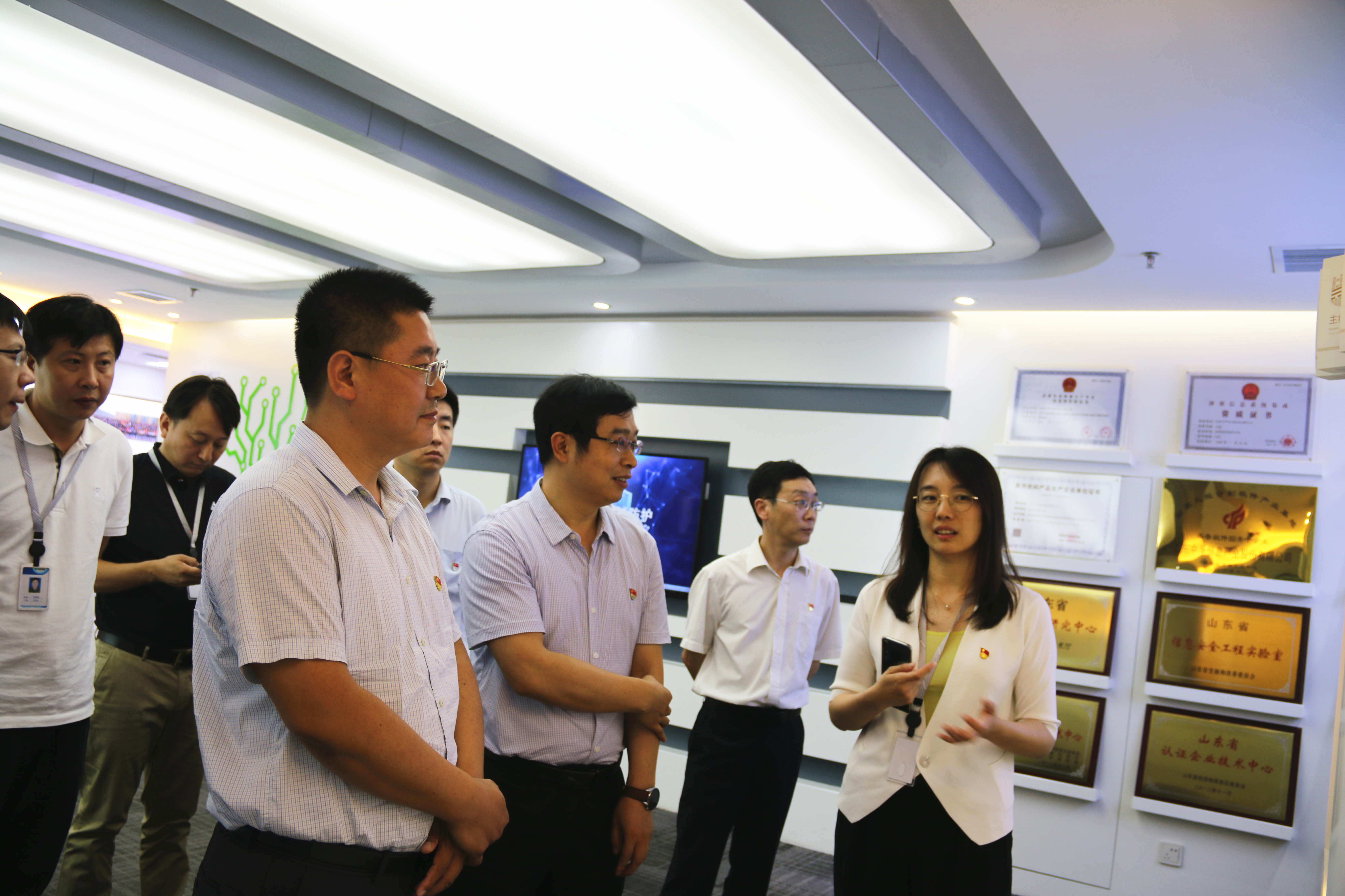 随后,调研组一行在公司党总支书记王萌的陪同下参观了公司展厅、办公环境及党员活动室等,深入了解了u体育党总支在党建方面的工作开展情况及创新成果,并给予高度赞扬。双方表示,未来将继续加强党建工作交流,以党建促发展,共同为保障国家网络安全作出积极贡献。